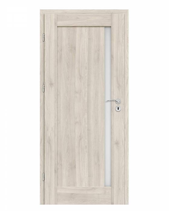 W przypadku drzwi przylgowych otrzymuje 3 zawiasy dwuczopowe z możliwością ich regulowania i zamek zasuwkowy. Dla drzwi bezprzylgowych przewidziano zawiasy ukryte wraz z zamkiem magnetycznym (możliwość wyboru zamka na klucz/blokadę/wkładkę patentową). Skrzydło w obu rodzajach wykonywane jest w technologii ramiakowej STILE z zastosowaniem ramiaków z płyty MDF i ramiaków pionowych z klejonego warstwowo drewna.
