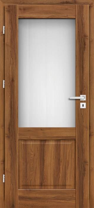 - dwa zawiasy czopowe wkręcane lub trzy zawiasy (w dekorach GREKO) w skrzydle przylgowym;