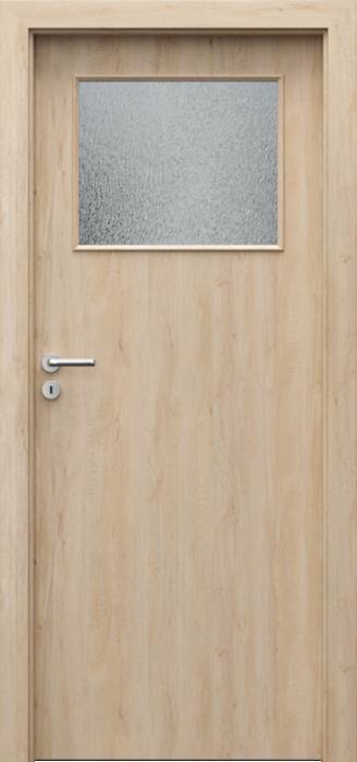 Lepsza trwałość konstrukcji dzięki obustronnie zamontowanej płycie HDF. 2 zawiasy czopowe. Drzwi wypełnione "plastrem miodu" lub płytą wiórową. W standardzie obecny jest też pochwyt okrągły. Możliwość zamknięcia drzwi na klucz, wkładkę lub blokadę łazienkową.