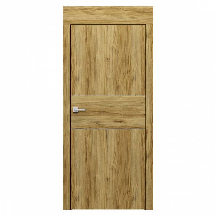 Jak widać na załączonym z lewej strony zdjęciu, drzwi pokojowe Porta LEVEL charakteryzują się oryginalnym ułożeniem oklein. Większa część jest pozioma - widzimy jak słoje drewna rozchodzą się ku bokom. Jeden jednak element, położony w centralnym miejscu, ma słoje rozchodzące się w górę i dół. Zastosowanie taKie ułożenia sprawiło, że całość zyskała ciekawy efekt. **Drzwi pokojowe Porta LEVEL choć są drzwiami pełnymi i brakuje ich przeszkleń, to mimo wszystko zwracają swoją uwagę. Nie są to standardowe drzwi, których wybór oznaczałby zupełną rezygnację ze zdobień.