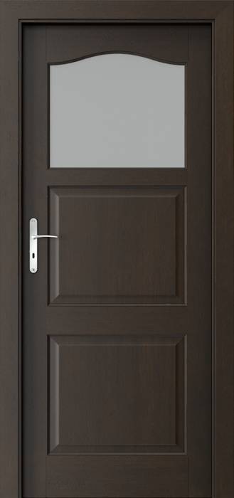Drzwi pokojowe MADRYT Małe okienko zachwycają każdego, kto choć raz miał okazję zobaczyć je na żywo. Ich piękno polega na połączeniu szkła matowego z drewnem o naturalnym ułożeniu słojów. Drzwi od firmy Porta zawsze wykonywane są w oryginalny sposób. Śmiało powiedzieć można, że nawet najbardziej znajome nam modele w rękach tego producenta nabrałyby wyjątkowości.