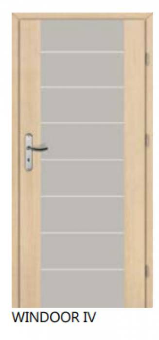 Drzwi zbudowane z drewna i szyby. Szkło jest tutaj hartowane, a przez to bezpieczne. Do wyboru różne jego wzory, np. satynowe. Grubość szklenia wynosi 8 mm. W skład wyposażenia drzwi wchodzą zawiasy, zamek oraz tuleje wentylacyjne. Zawiasy są czopowe wkręcane, a zamek można dowolnie wybierać: klucz/wkładka/blokada. Ramiaki w drzwiach zbudowane zostały z płyty MDF i obłożone płytą typu HDF.
