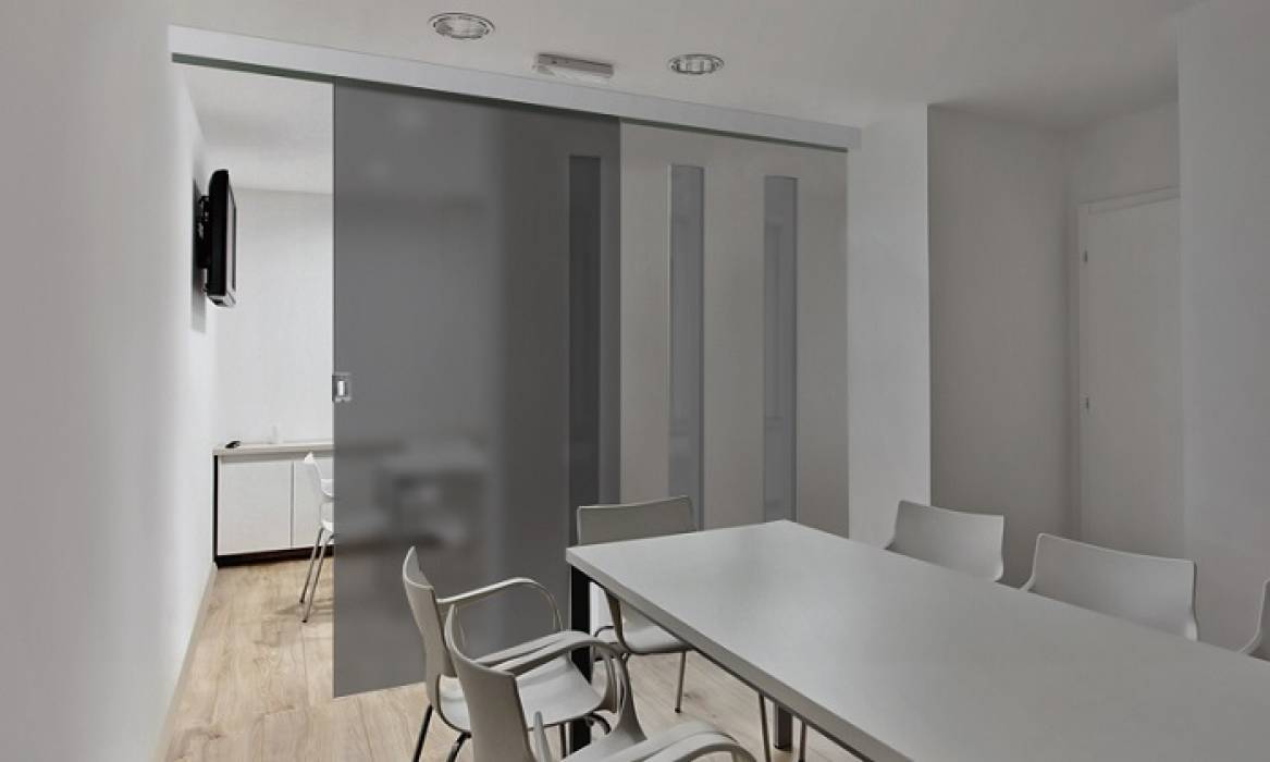 Nowoczesne drzwi przesuwne wykonane ze szkła hartowanego. Przeznaczone do użytku wewnątrz budynków. Najczęściej wybierane przez właścicieli firm do oddzielenia od siebie sal konferencyjnych czy przestrzeni do pracy. Zapewniają dobrą izolację akustyczną, dając możliwość zarówno skupienia się na swoich obowiązkach w ciszy, jak i swobodnej rozmowy na ważne tematy.