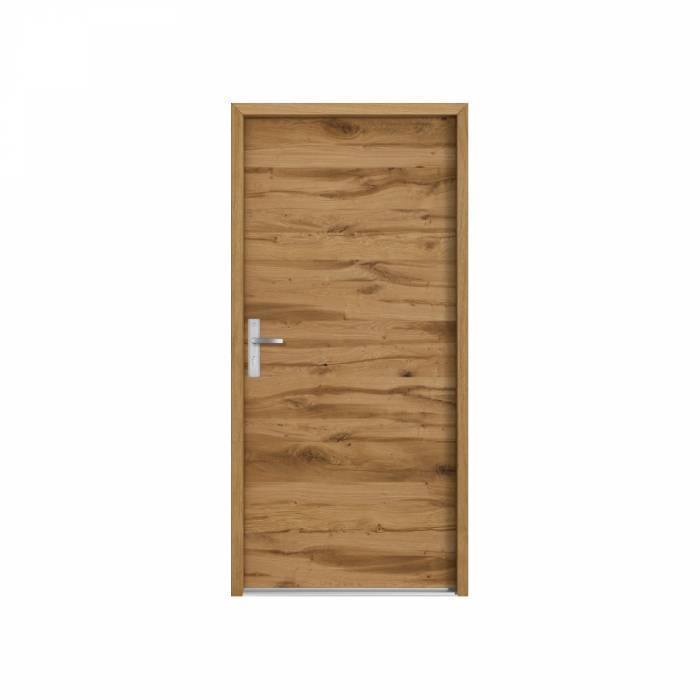 • skrzydło drewniane o grubości 55 mm z uszczelką • ościeżnica stała o szerokości 90 mm z uszczelką • pakiet wyciszający wewnątrz skrzydła 31 dB • trzy zawiasy szwajcarskiej firmy SFS regulowane w trzech płaszczyznach z nakładkami ozdobnymi • wysokiej jakości klamka AXA z szyldem podłużnym w drugiej klasie bezpieczeństwa • dwa zamki trzpieniowe firmy LOB • regulowana blacha zaczepowa w ościeżnicy firmy LOB • dwie wkładki patentowe w systemie jednego klucza niemieckiej firmy WILKA • górna wkładka z gałką • komplet kluczy - 6 sztuk • próg aluminiowy niemieckiej firmy GU