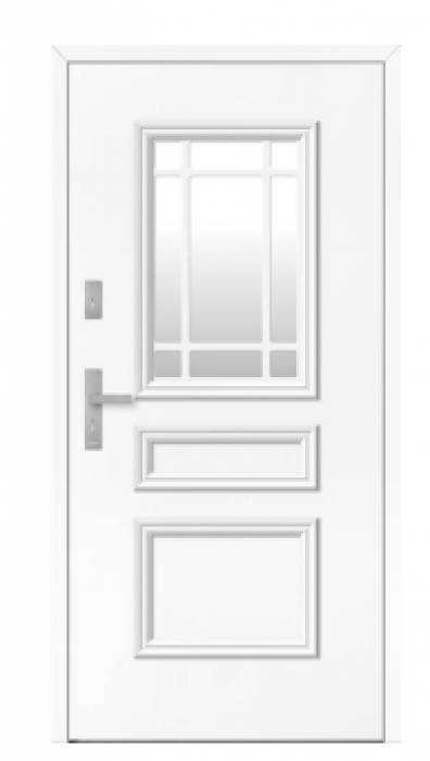 Drzwi od firmy Barański linia ELEGANCE, która doskonale wpisuje się w elewacje zarówno nowoczesnych, jak i tradycyjnych domów. Konstrukcja skrzydła drzwi wykonana jest z drewna sosnowego klejonego warstwowo i naprzemiennie. Dodatkowe wzmocnienie stanowią specjalne metalowe ceowniki. Za niską przenikalność cieplną odpowiada dedykowany panel termoizolacyjny znajdujący się pomiędzy ramiakami skrzydła drzwi. Od zewnątrz drzwi wykończone są wodoodporną sklejkę dębową, która zapewnia odporność na czynniki zewnętrzne jednocześnie zapewniając piękny wygląd jakim charakteryzuje się naturalne drewno. Kamień to szlachetny materiał o dużej wytrzymałości.