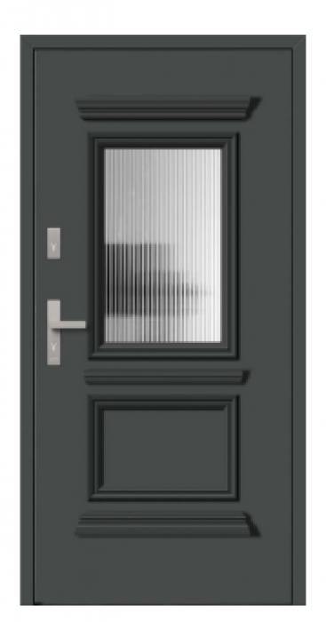Drzwi od firmy Barański linia ELEGANCE, która doskonale wpisuje się w elewacje zarówno nowoczesnych, jak i tradycyjnych domów. Konstrukcja skrzydła drzwi wykonana jest z drewna sosnowego klejonego warstwowo i naprzemiennie. Dodatkowe wzmocnienie stanowią specjalne metalowe ceowniki. Za niską przenikalność cieplną odpowiada dedykowany panel termoizolacyjny znajdujący się pomiędzy ramiakami skrzydła drzwi. Od zewnątrz drzwi wykończone są wodoodporną sklejkę dębową, która zapewnia odporność na czynniki zewnętrzne jednocześnie zapewniając piękny wygląd jakim charakteryzuje się naturalne drewno. Kamień to szlachetny materiał o dużej wytrzymałości.