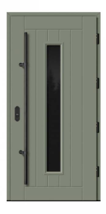 Drzwi od firmy Barański linia ELEGANCE, która doskonale wpisuje się w elewacje zarówno nowoczesnych, jak i tradycyjnych domów. Konstrukcja skrzydła drzwi wykonana jest z drewna sosnowego klejonego warstwowo i naprzemiennie. Dodatkowe wzmocnienie stanowią specjalne metalowe ceowniki. Za niską przenikalność cieplną odpowiada dedykowany panel termoizolacyjny znajdujący się pomiędzy ramiakami skrzydła drzwi. Od zewnątrz drzwi wykończone są wodoodporną sklejkę dębową, która zapewnia odporność na czynniki zewnętrzne jednocześnie zapewniając piękny wygląd jakim charakteryzuje się naturalne drewno. Kamień to szlachetny materiał o dużej wytrzymałości.