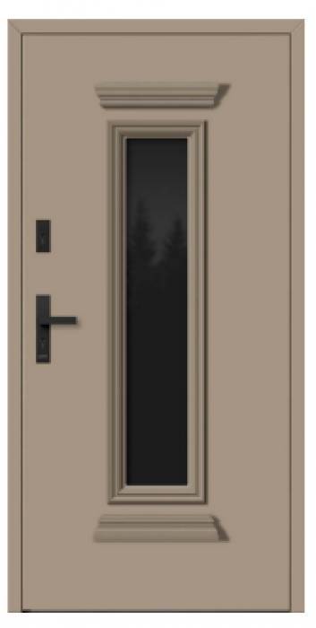 Drzwi od firmy Barański linia ELEGANCE, która doskonale wpisuje się w elewacje zarówno nowoczesnych, jak i tradycyjnych domów. Konstrukcja skrzydła drzwi wykonana jest z drewna sosnowego klejonego warstwowo i naprzemiennie. Dodatkowe wzmocnienie stanowią specjalne metalowe ceowniki. Za niską przenikalność cieplną odpowiada dedykowany panel termoizolacyjny znajdujący się pomiędzy ramiakami skrzydła drzwi. Od zewnątrz drzwi wykończone są wodoodporną sklejkę dębową, która zapewnia odporność na czynniki zewnętrzne jednocześnie zapewniając piękny wygląd jakim charakteryzuje się naturalne drewno. Kamień to szlachetny materiał o dużej wytrzymałości.