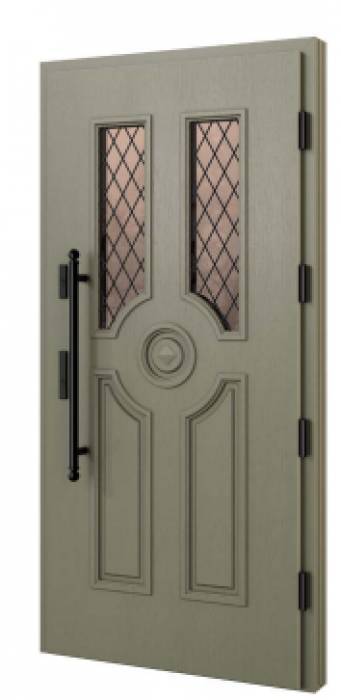 Drzwi od firmy Barański linia ELEGANCE, która doskonale wpisuje się w elewacje zarówno nowoczesnych, jak i tradycyjnych domów. Konstrukcja skrzydła drzwi wykonana jest z drewna sosnowego klejonego warstwowo i naprzemiennie. Dodatkowe wzmocnienie stanowią specjalne metalowe ceowniki. Za niską przenikalność cieplną odpowiada dedykowany panel termoizolacyjny znajdujący się pomiędzy ramiakami skrzydła drzwi. Od zewnątrz drzwi wykończone są wodoodporną sklejkę dębową, która zapewnia odporność na czynniki zewnętrzne jednocześnie zapewniając piękny wygląd jakim charakteryzuje się naturalne drewno. Kamień to szlachetny materiał o dużej wytrzymałości.