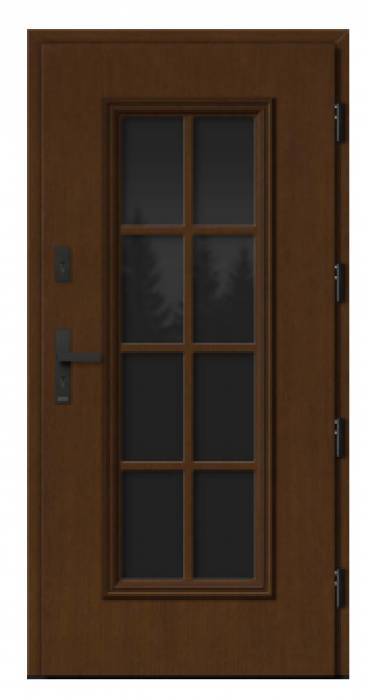 Drzwi od firmy Barański linia ELEGANCE, która doskonale wpisuje się w elewacje zarówno nowoczesnych, jak i tradycyjnych domów. Konstrukcja skrzydła drzwi wykonana jest z drewna sosnowego klejonego warstwowo i naprzemiennie. Dodatkowe wzmocnienie stanowią specjalne metalowe ceowniki. Za niską przenikalność cieplną odpowiada dedykowany panel termoizolacyjny znajdujący się pomiędzy ramiakami skrzydła drzwi. Od zewnątrz drzwi wykończone są wodoodporną sklejkę dębową, która zapewnia odporność na czynniki zewnętrzne jednocześnie zapewniając piękny wygląd jakim charakteryzuje się naturalne drewno. Kamień to szlachetny materiał o dużej wytrzymałości.