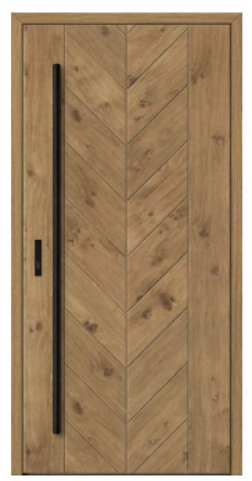 Linia jedyna w swoim rodzaju, stworzona z myślą o projektach wyjątkowych. Trafi w oczekiwania klientów poszukujących rozwiązań nieszablonowych i niepowtarzalnych. Linia Maverick wyróżnia się tzw. konstrukcją "płycinową". Konstrukcja skrzydła drzwi wykonana jest z drewna sosnowego klejonego warstwowo i naprzemiennie. Dodatkowe wzmocnienie stanowią specjalne metalowe ceowniki. Za niską przenikalność cieplną odpowiada dedykowany panel termoizolacyjny znajdujący się pomiędzy ramiakami skrzydła drzwi. Od zewnątrz drzwi wykończone są wodoodporną sklejkę dębową, która zapewnia odporność na czynniki zewnętrzne jednocześnie zapewniając piękny wygląd jakim charakteryzuje się naturalne drewno.