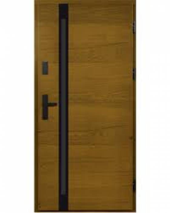 W drzwiach wejściowych zastosowano nowoczesny i niezwykle wygodny uchwyt, który ma na celu zastępować popularne dotąd klamki. Z jego pomocą nie ma problemu z wejściem do domu nawet wtedy, kiedy w dłoniach trzymamy ciężkie torby z zakupami. O wiele łatwiej o pociągnięcie za tak długi uchwyt niż męczenie się z klamką. Dużym jego plusem jest też to, że wygląda doskonale połączony ze stylem nowoczesnych domów!