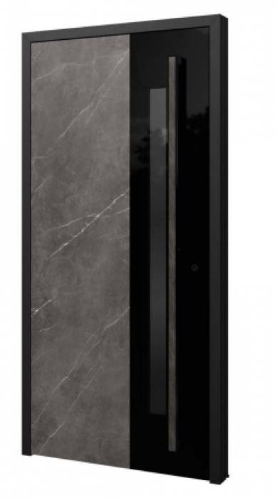 Drzwi od firmy Barański linia PRESTIGE KAMIEŃ która doskonale wpisuje się w elewacje zarówno nowoczesnych, jak i tradycyjnych domów. Drzwi z tej linii od zewnętrznej strony zdobią naturalne kamienie, które w połączeniu z drewnem tworzą niebanalne i wysmakowane kompozycje. Linia Prestige Kamień wyróżnia się tzw. konstrukcją "płycinową". Konstrukcja skrzydła drzwi wykonana jest z drewna sosnowego klejonego warstwowo i naprzemiennie. Dodatkowe wzmocnienie stanowią specjalne metalowe ceowniki. Za niską przenikalność cieplną odpowiada dedykowany panel termoizolacyjny znajdujący się pomiędzy ramiakami skrzydła drzwi. Od zewnątrz drzwi wykończone są wodoodporną sklejkę dębową, która zapewnia odporność na czynniki zewnętrzne jednocześnie zapewniając piękny wygląd jakim charakteryzuje się naturalne drewno. Kamień to szlachetny materiał o dużej wytrzymałości. W połączniu z drewnem pozwala na stworzenie ciekawy i oryginalnych konstrukcji. Ozdobna warstwa kamienia jest montowana wyłącznie od strony zewnętrznej drzwi.