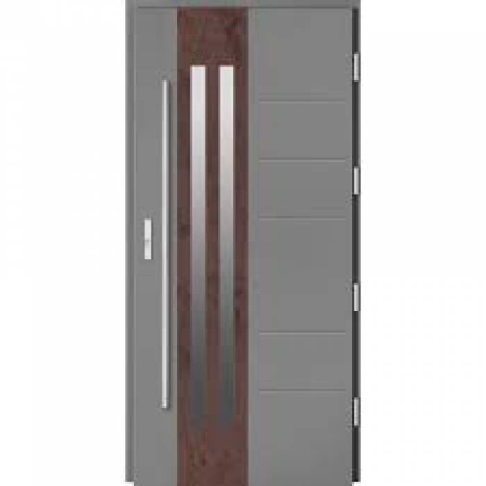 Drzwi od firmy Barański linia PRESTIGE KAMIEŃ która doskonale wpisuje się w elewacje zarówno nowoczesnych, jak i tradycyjnych domów. Drzwi z tej linii od zewnętrznej strony zdobią naturalne kamienie, które w połączeniu z drewnem tworzą niebanalne i wysmakowane kompozycje. Linia Prestige Kamień wyróżnia się tzw. konstrukcją "płycinową". Konstrukcja skrzydła drzwi wykonana jest z drewna sosnowego klejonego warstwowo i naprzemiennie. Dodatkowe wzmocnienie stanowią specjalne metalowe ceowniki. Za niską przenikalność cieplną odpowiada dedykowany panel termoizolacyjny znajdujący się pomiędzy ramiakami skrzydła drzwi. Od zewnątrz drzwi wykończone są wodoodporną sklejkę dębową, która zapewnia odporność na czynniki zewnętrzne jednocześnie zapewniając piękny wygląd jakim charakteryzuje się naturalne drewno. Kamień to szlachetny materiał o dużej wytrzymałości. W połączniu z drewnem pozwala na stworzenie ciekawy i oryginalnych konstrukcji. Ozdobna warstwa kamienia jest montowana wyłącznie od strony zewnętrznej drzwi.
