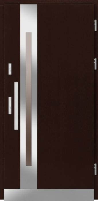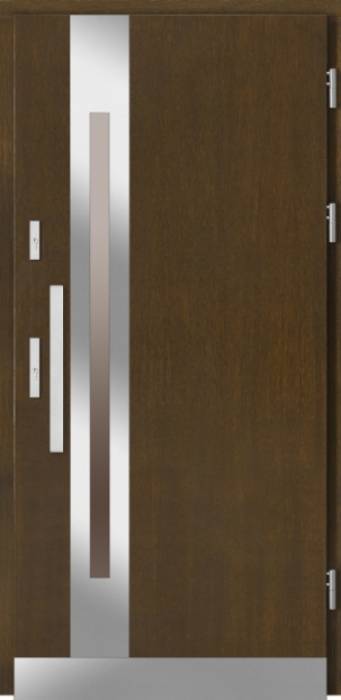 - Drzwi Rovigo to klasyczne drzwi drewniane, w które wplecione zostały nowoczesne elementy - podłużny uchwyt z połyskiem oraz delikatne, podłużne przeszklenie, dzięki któremu z zewnątrz uzyskujemy ciekawy efekt, a wewnątrz możemy cieszyć się oświetlonym subtelnie korytarzem (dobre rozwiązanie wtedy, gdy korytarz nie ma okna).