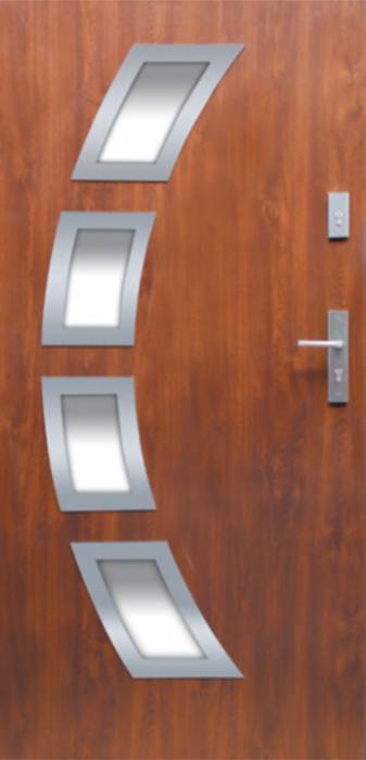 Oto propozycja dla tych, którzy poszukują wyjątkowych drzwi wejściowych, wyróżniających się od innych drzwi dostępnych na rynku. Oryginalność oferowanych tutaj drzwi WZÓR 21A opiera się na wykorzystaniu nieszablonowego kształtu przeszklenia.