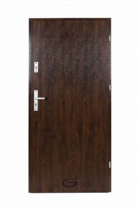 Drzwi mają standardową konstrukcję, w ten sposób można łatwo wpleść je w różne style. Skrzydło przedstawione jest w wersji pełnej. Wypełnienie drzwi stanowi polistyren spieniony.Skrzydło drzwiowe oraz ościeżnica wykonane zostało z blachy stalowej. Dodatkowo drzwi posiadają zamek główny 3-bolcowy,zamek dodatkowy 3-bolcowy,drewniane wzmocnienie okuć,3 bolce antywyważeniowe oraz próg nierdzewny Grubość skrzydła to 55mm, ale dostępne są również w rozmiarze 72mm. W naszej ofercie posiadamy również szeroką gamę modeli drzwi zewnętrznych. Dodatkowo oferujemy pomiar i montaż.