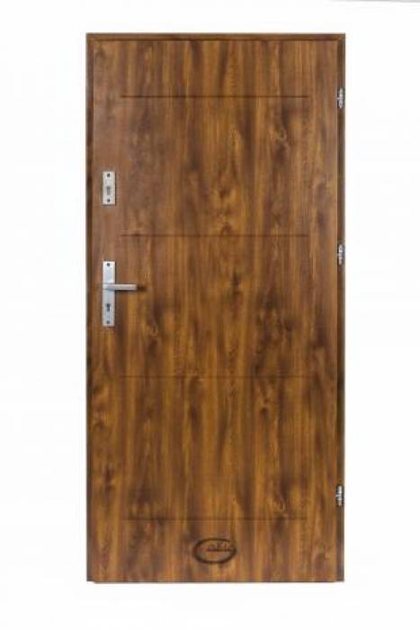 Drzwi mają standardową konstrukcję, w ten sposób można łatwo wpleść je w różne style. Skrzydło przedstawione jest w wersji pełnej.Wypełnienie drzwi stanowi polistyren spieniony. Grubość skrzydła to 55mm, ale dostępne są również w rozmiarze 72mm.Skrzydło drzwiowe oraz ościeżnica wykonane zostało z blachy stalowej. Dodatkowo drzwi posiadają zamek główny 3-bolcowy,zamek dodatkowy 3-bolcowy,drewniane wzmocnienie okuć,3 bolce antywyważeniowe oraz próg nierdzewny W naszej ofercie posiadamy również szeroką gamę modeli drzwi zewnętrznych. Dodatkowo oferujemy pomiar i montaż.